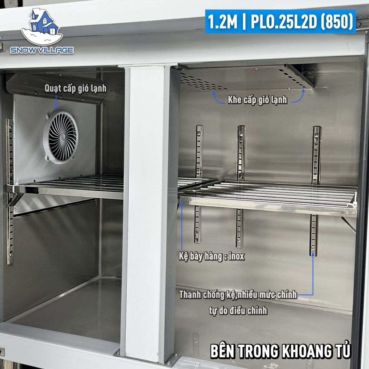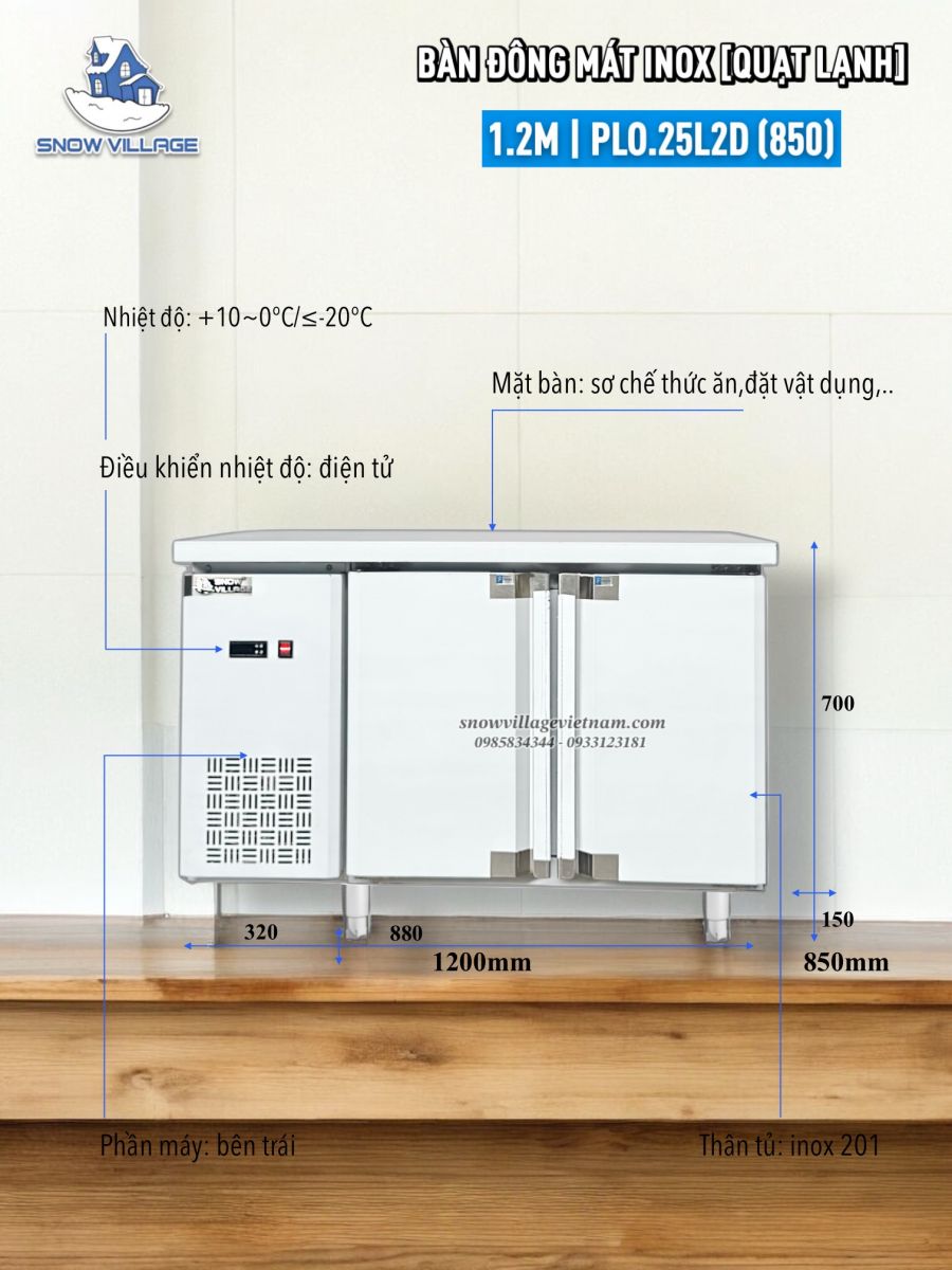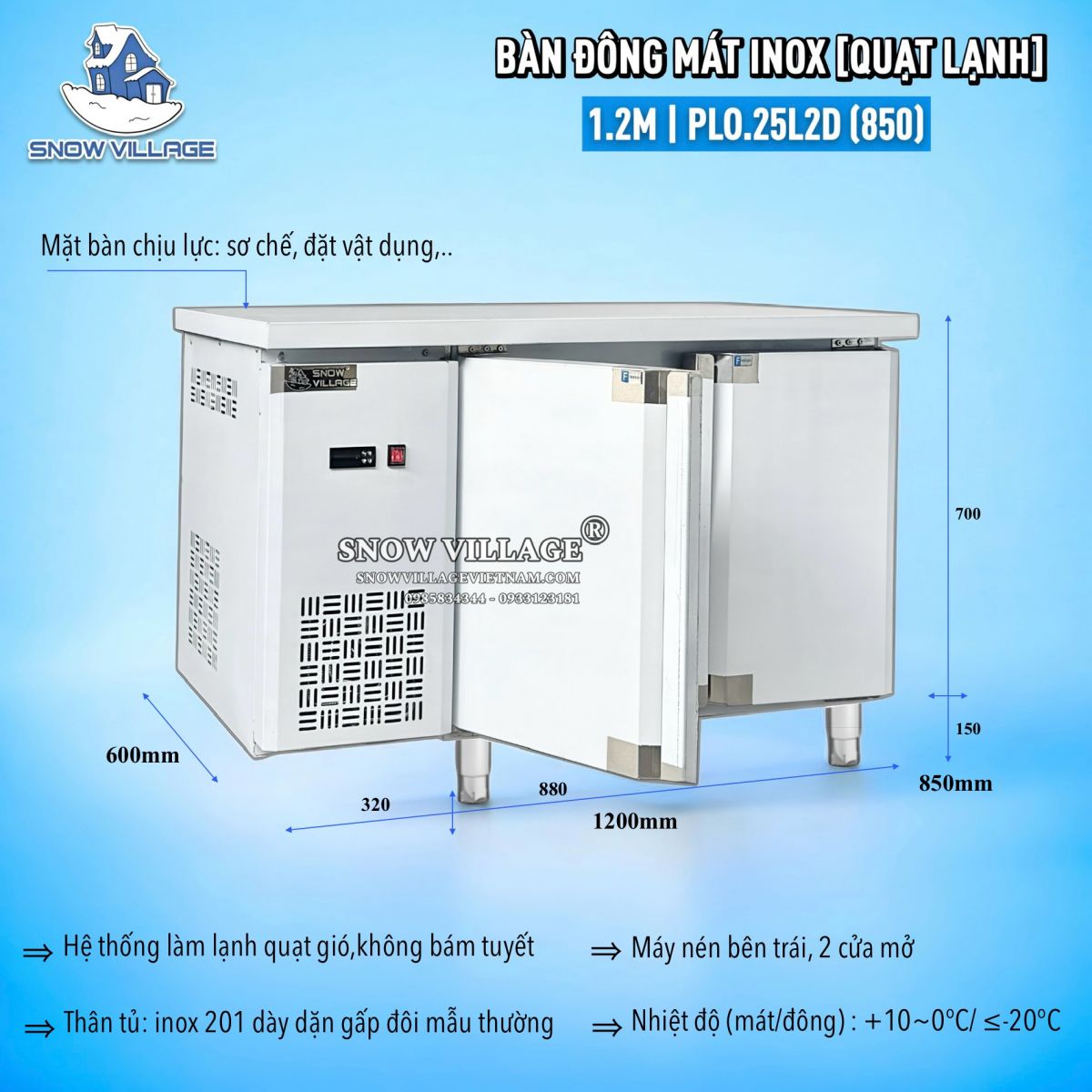 Bàn đông mát inox 1.2m cao cấp PLO.25L2D 850
