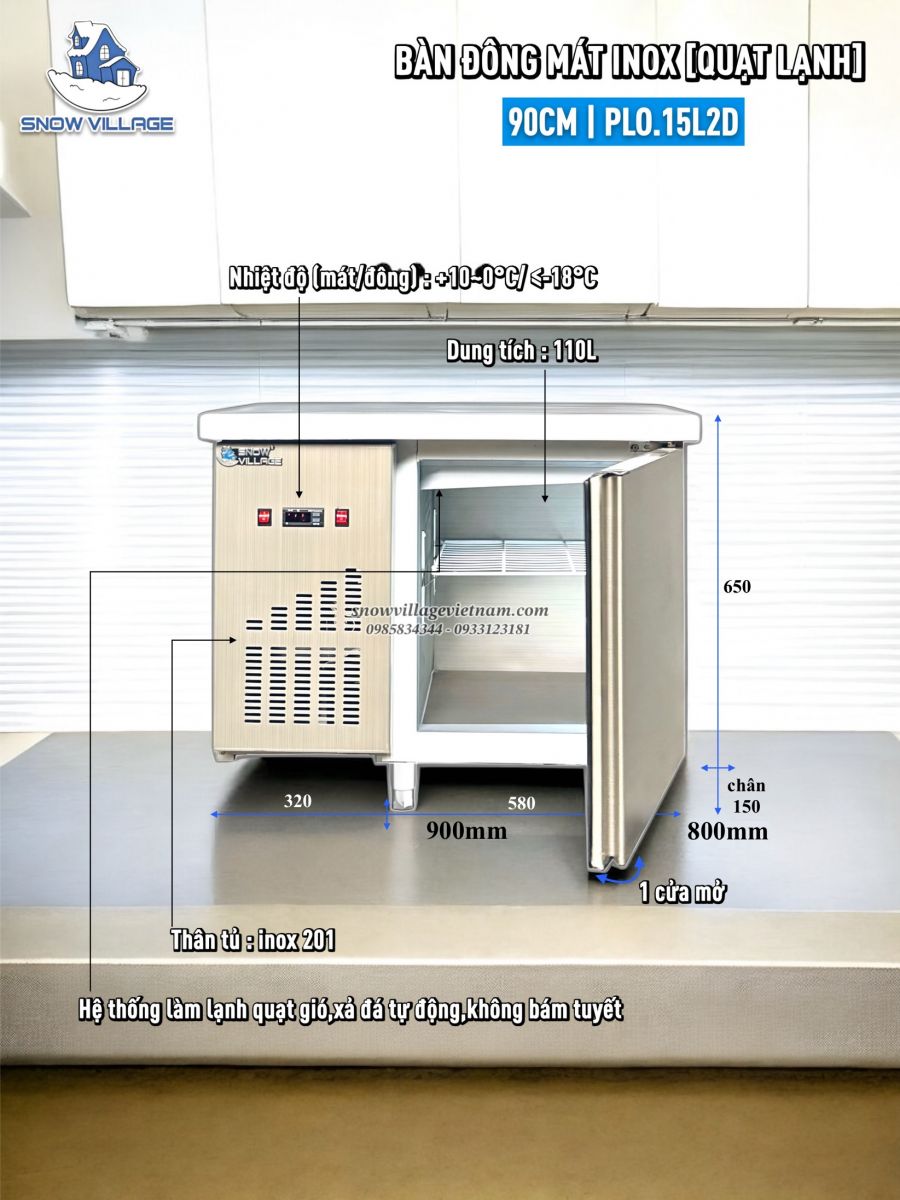Bàn đông inox 90cm quạt lạnh thương hiệu SNOW VILLAGE®