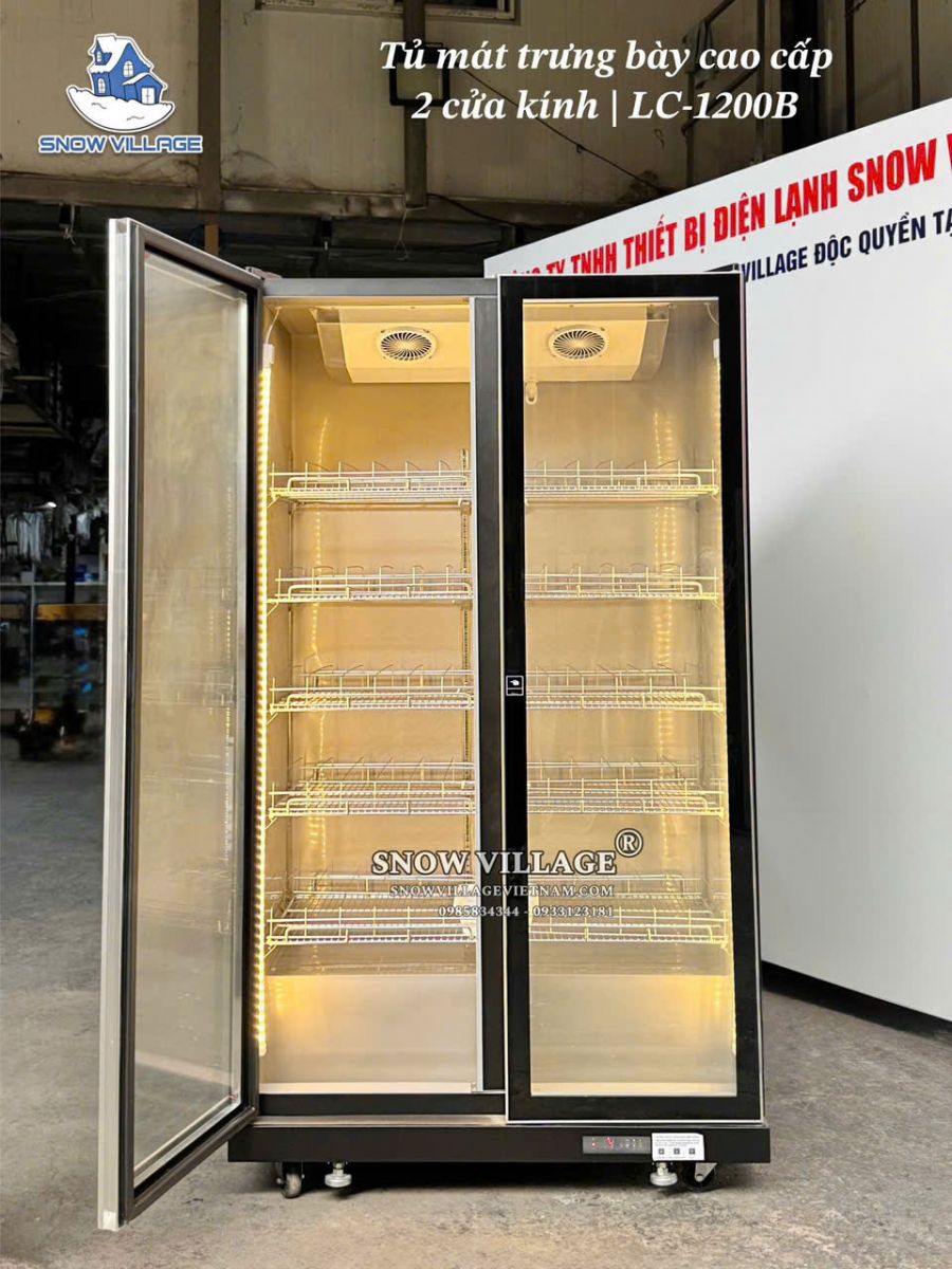 Tủ Mát 2 Cửa Kính Cao Cấp LC-1200B là lựa chọn hoàn hảo: thiết kế sang trọng, làm mát hiệu quả và giúp sản phẩm luôn nổi bật, nâng tầm trải nghiệm trưng bày.