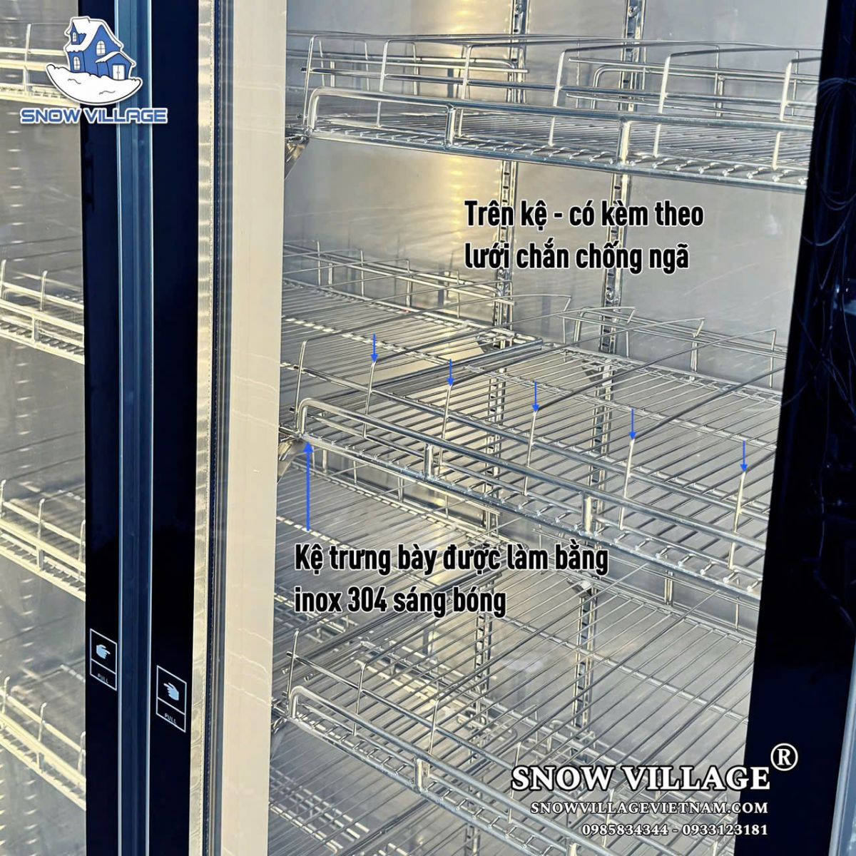 Với dung tích 820L, tủ đáp ứng tốt nhu cầu của cửa hàng tiện lợi, quán bar, beer club, siêu thị mini hay showroom rượu, vừa bảo quản vừa thu hút khách hàng ngay từ ánh nhìn đầu tiên.