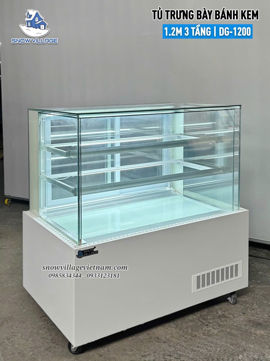 Tủ Bánh Không Viển 3 Tầng DG-1200 thiết kế tinh tế, bảo quản tuyệt hảo – lựa chọn hoàn hảo cho không gian trưng bày của bạn.
