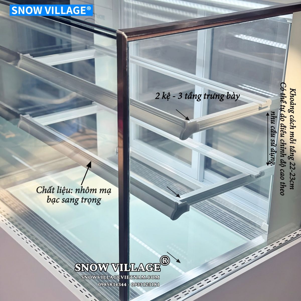 Tủ Bánh Full Kính Không Viền DG-1200 – Snow Village với thiết kế full kính và không viền, trưng bày 3 tầng, là điểm nhấn hoàn hảo cho mọi tiệm bánh muốn tạo dấu ấn sang trọng, chuyên nghiệp và khác biệt.