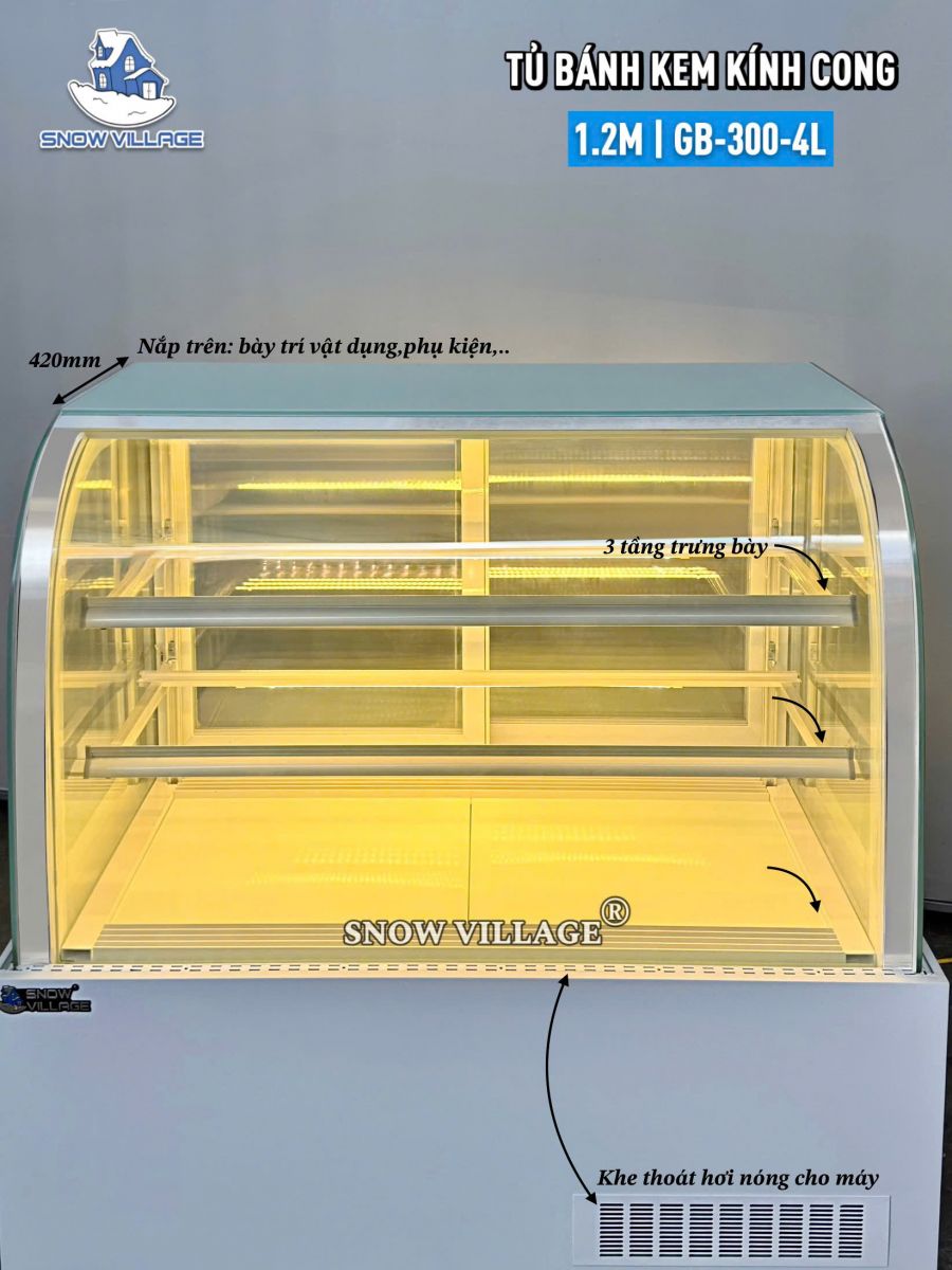 Đó là lý do Tủ Bánh 3 Tầng 1m2 GB-300-4L ra đời – một mẫu tủ trưng bày kính cong sang trọng, được thiết kế để vừa bảo quản chuẩn ẩm vừa làm nổi bật sản phẩm như một chiếc “quầy triển lãm thu nhỏ”.