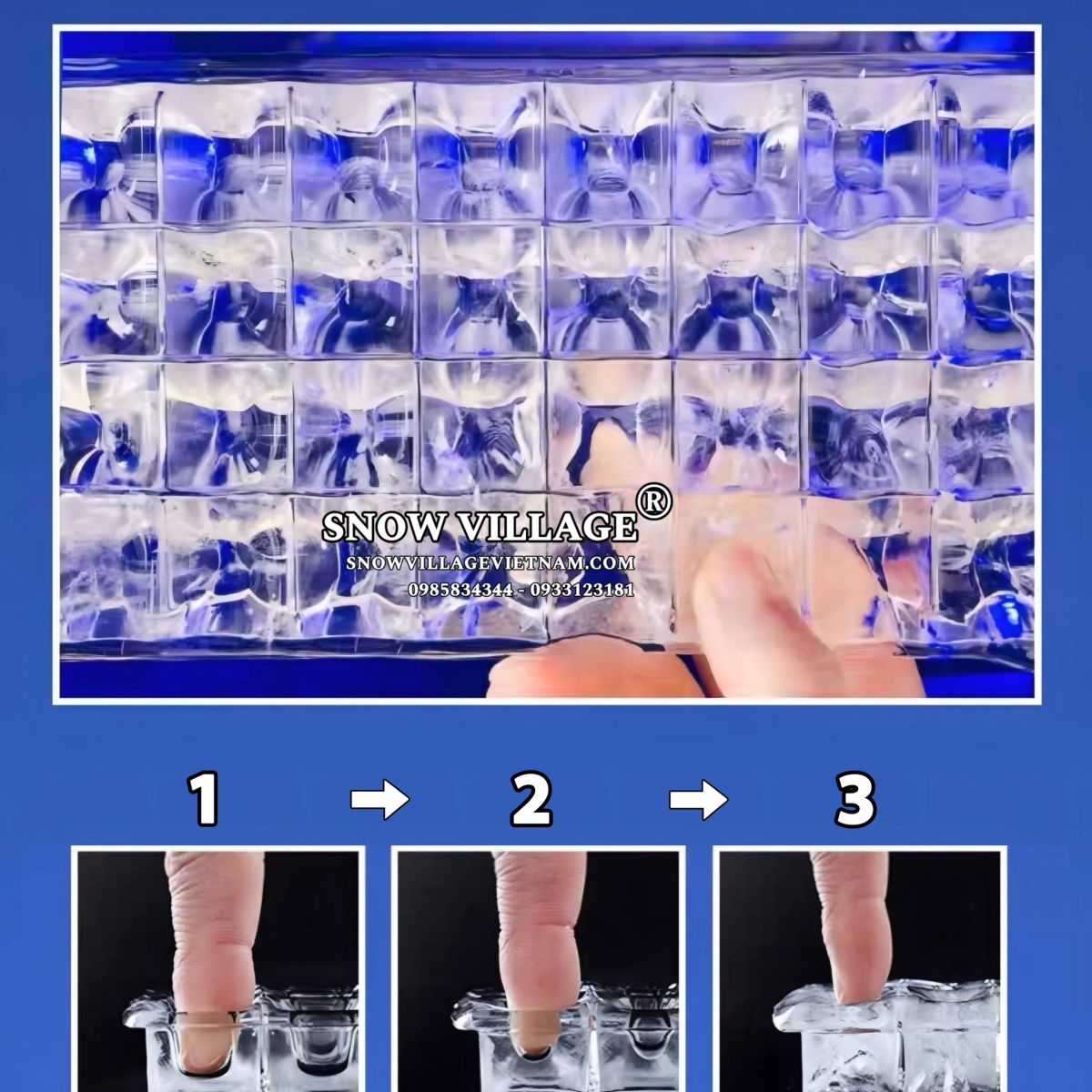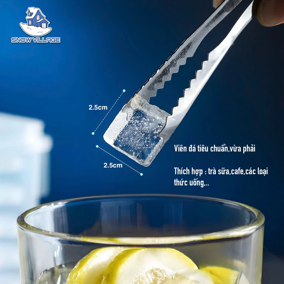 → Viên đá trong suốt, gọn, vuông 25x25mm, nhìn ly nước “cao cấp” hơn hẳn.