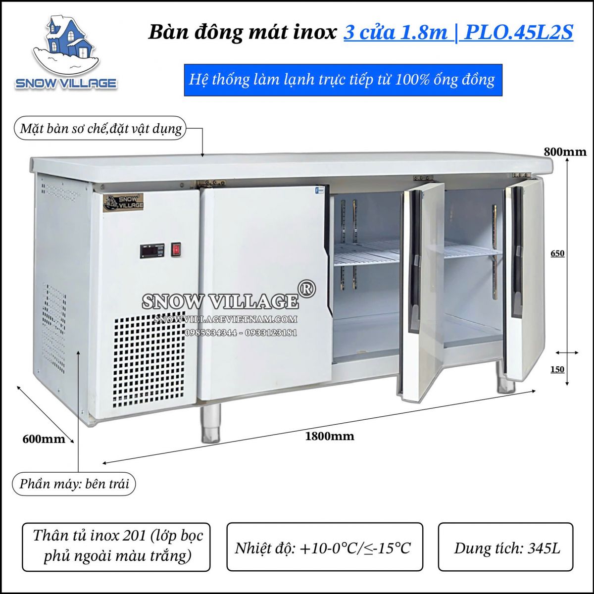 Mang lại chuẩn trải nghiệm bếp chuyên nghiệp với Bàn Lạnh Inox 1m8 – PLO.45L2S Snow Village