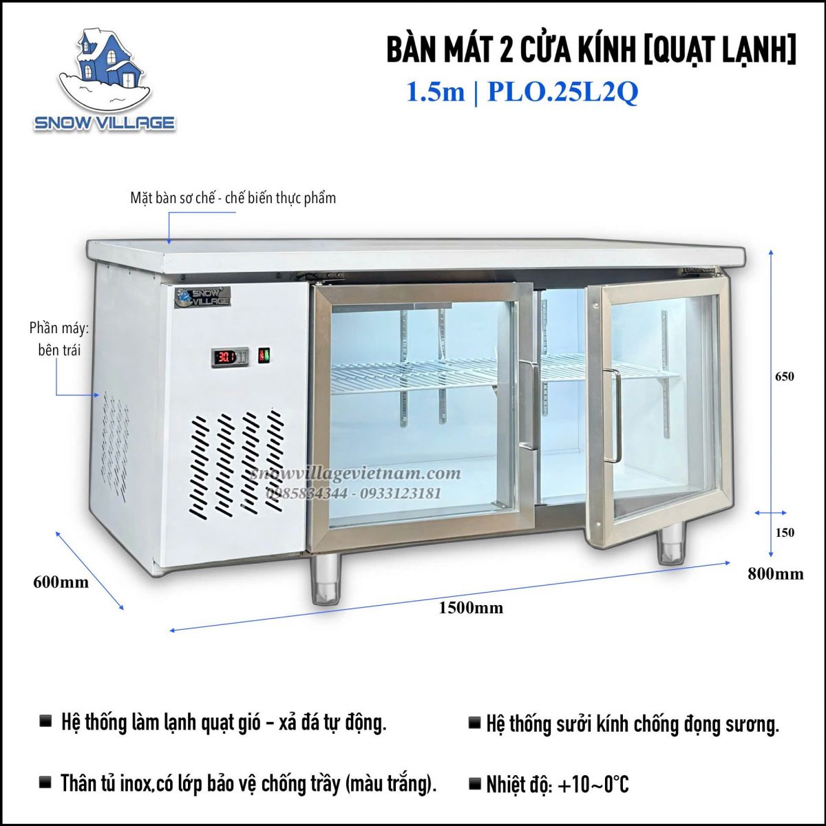 Bàn Mát 2 Cửa Kính 1m5 PLO.25L2Q của Snow Village là lựa chọn tối ưu giúp bạn bảo quản thực phẩm hiệu quả, tiết kiệm diện tích và nâng tầm chuyên nghiệp cho không gian bếp và quầy bar. Đừng bỏ lỡ cơ hội sở hữu sản phẩm chất lượng cao, đa năng và bền bỉ này!