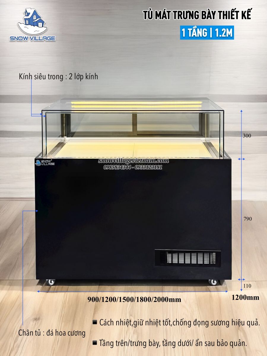 Tủ trưng bày bánh kem 1 tầng thương hiệu Snow Village® . Tủ đang được rất nhiều khách hàng lựa chọn đặt tại quầy bar coffee, siêu thị,. với sự tiện lợi cùng những tính năng đa dạng của sản phẩm dùng để trưng bày các loại bánh ngọt, bánh kem và thức uống,trái cây,…Tạo nên không gian trưng bày hiện đại, sang trọng, hiệu ứng trưng bày hiệu quả hơn.