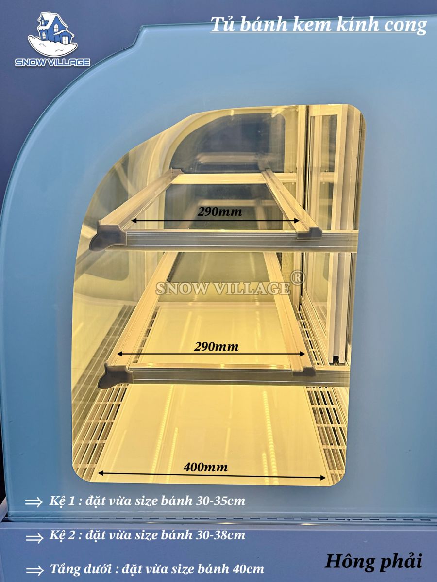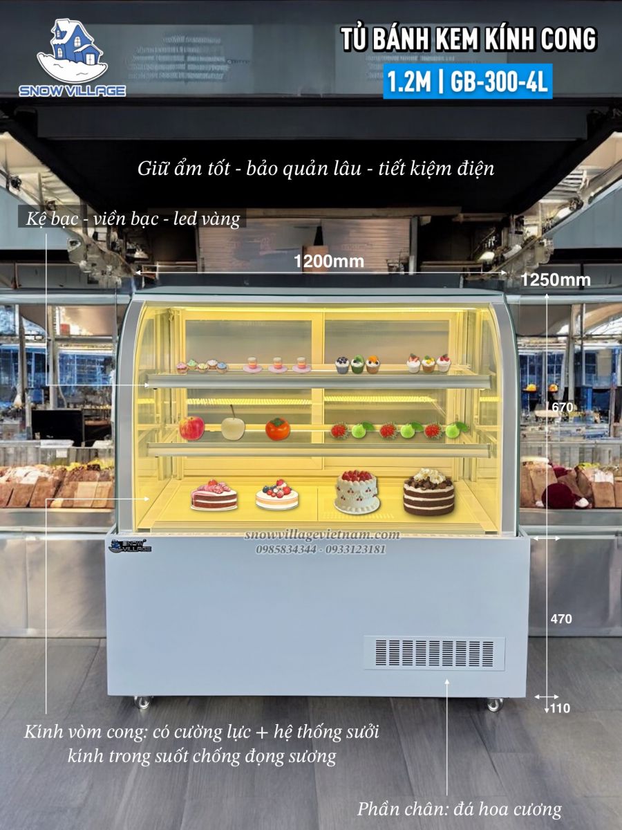THIẾT KẾ của Tủ trưng bày bánh kem 1.2m kính cong Snow Village®
