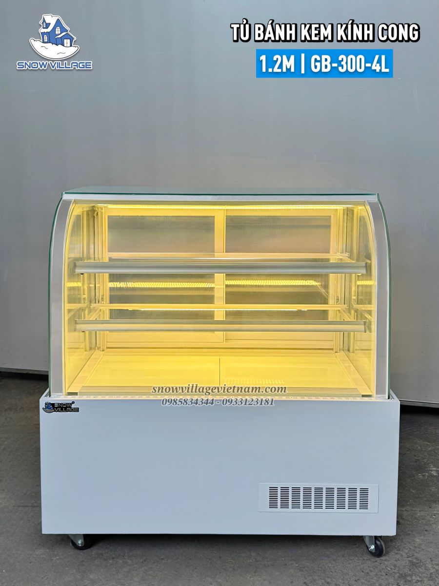 Tủ bánh kem kính cong 1.2m 3 tầng