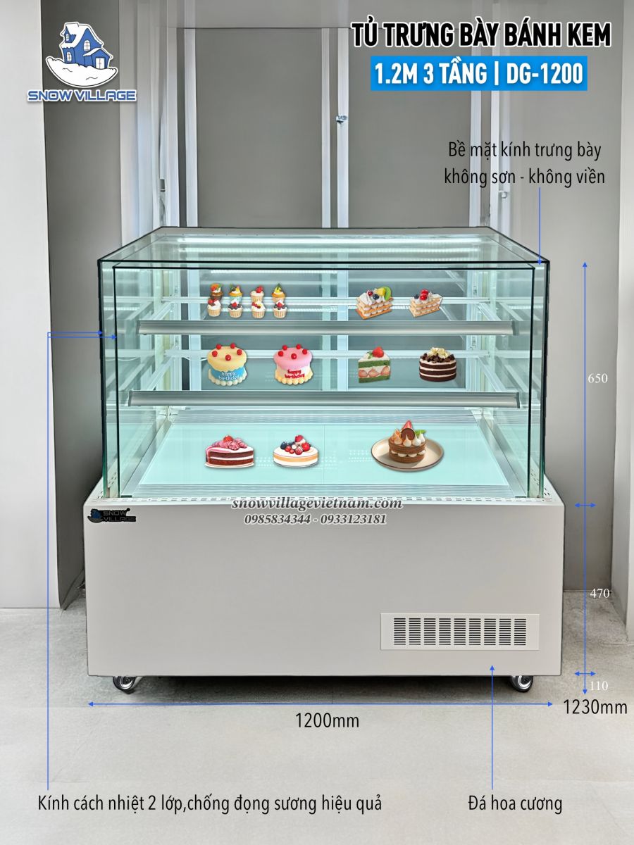 Tủ trưng bày bánh kem thiết kế 1.2m 3 tầng thương hiệu SNOW VILLAGE®