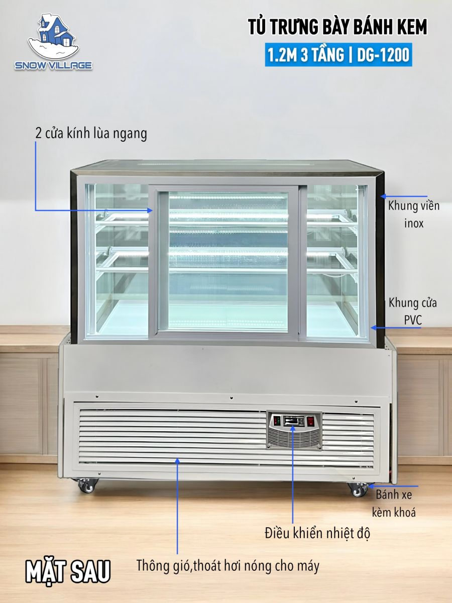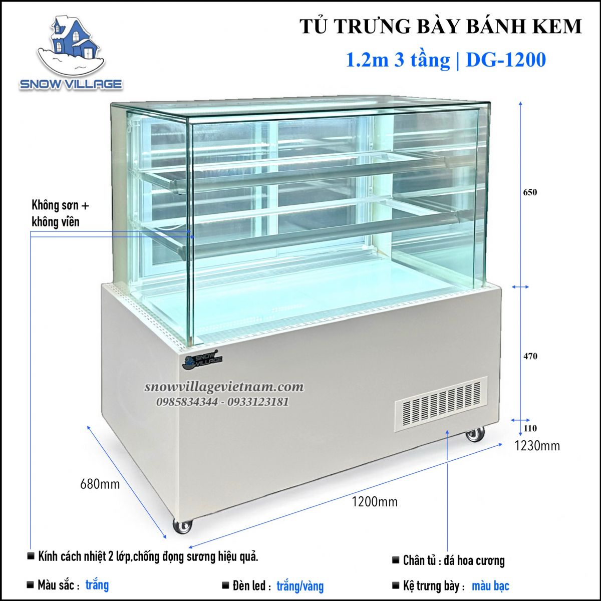 Tủ bánh kem thiết kế 1.2m 3 tầng DG-1200