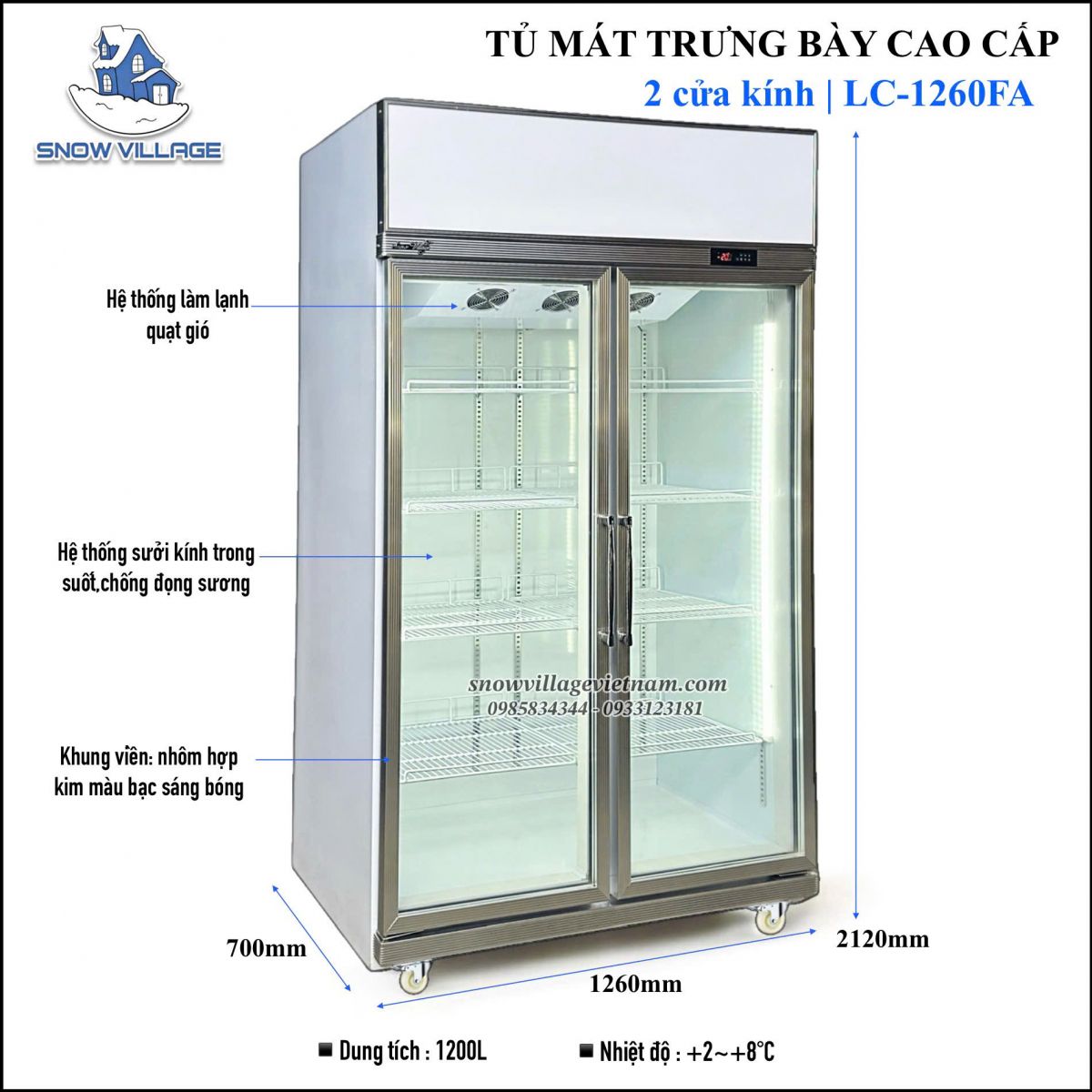 VỚI THIẾT KẾ hiện đại, dung tích lớn, kính trong suốt chống đọng sương và công nghệ làm lạnh tiên tiến, TỦ MÁT 2 CỬA KÍNH LC-1260FA nhà Snow Village là lựa chọn lý tưởng dành cho những không gian kinh doanh chuyên nghiệp, cần sự chỉn chu từ bên ngoài đến hiệu quả bên trong.