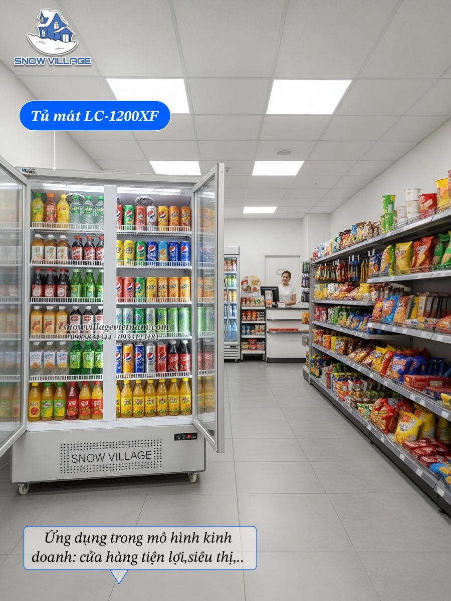 Tủ mát 2 cánh kính LC-1200XF được ứng dụng rộng rãi trong các hoạt động kinh doanh và dịch vụ thực phẩm như siêu thị, cửa hàng tiện lợi, nhà hàng, khách sạn, tiệm bánh và cửa hàng thực phẩm sạch. Chuyên dùng để bảo quản, trưng bày đồ uống, thực phẩm chế biến sẵn, nguyên liệu tươi sống (thịt, cá, rau củ) và cả các mặt hàng như bánh kem, hoa tươi,..