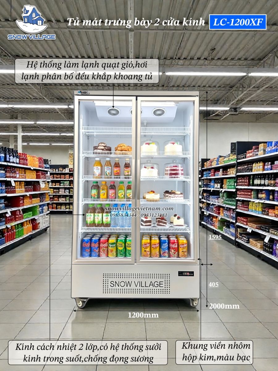 Tủ mát trưng bày 2 cửa kính thương hiệu Snow Village