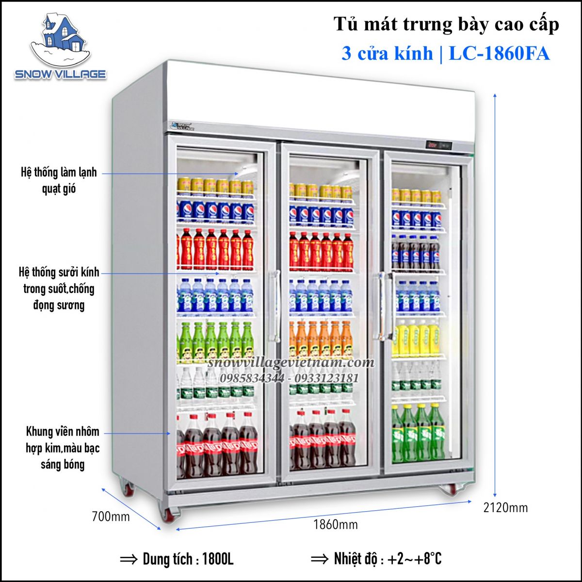 Tủ mát 3 cửa kính cao cấp LC-1860FA