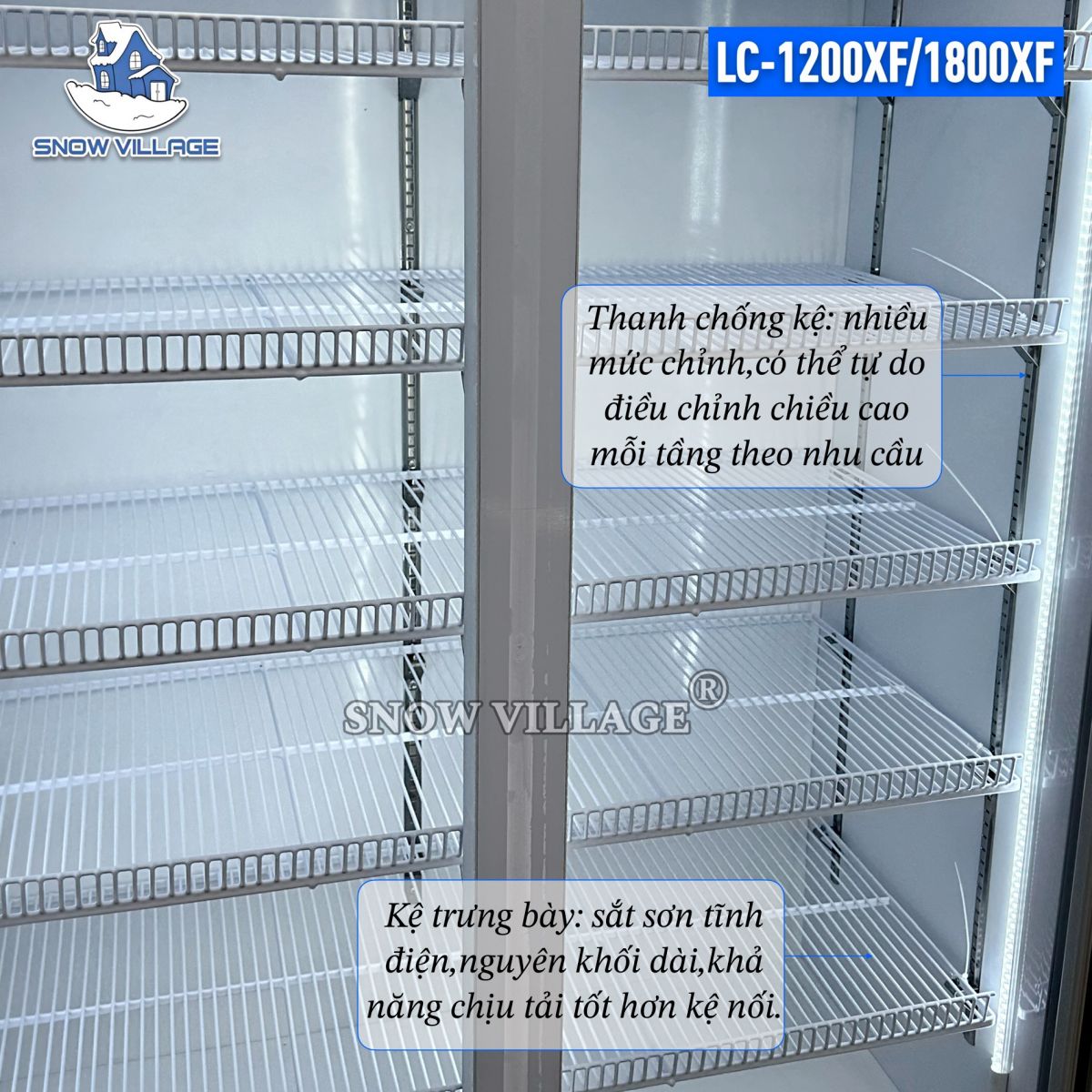 Model : LC-1800XF Tủ được thiết kế cải tiến tính năng, mẫu mã, màu sắc giúp trưng bày các thực phẩm, thức uống, tạo nên sự sang trọng, tinh tế.. Ưu điểm vượt trội là có hệ thống sưởi kính giúp mặt kính trưng bày luôn trong suốt khi đặt tủ môi trường bên ngoài, phù hợp với môi trường tại Việt Nam.