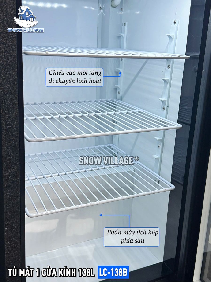 • Dung tích 138L – 3 kệ, 4 tầng trưng bày
