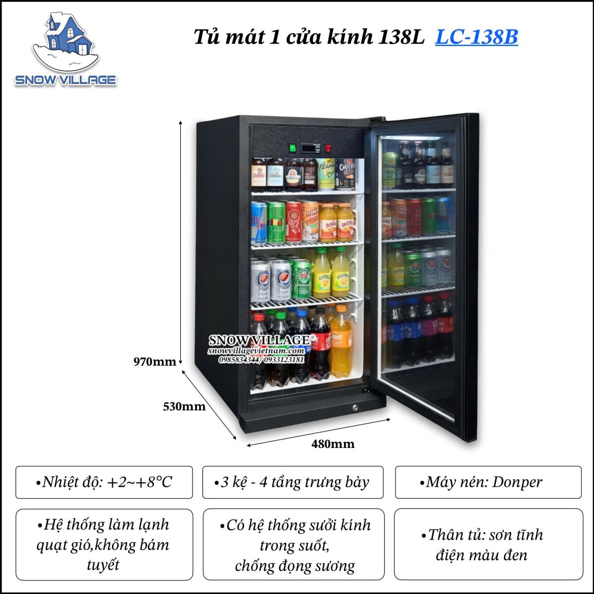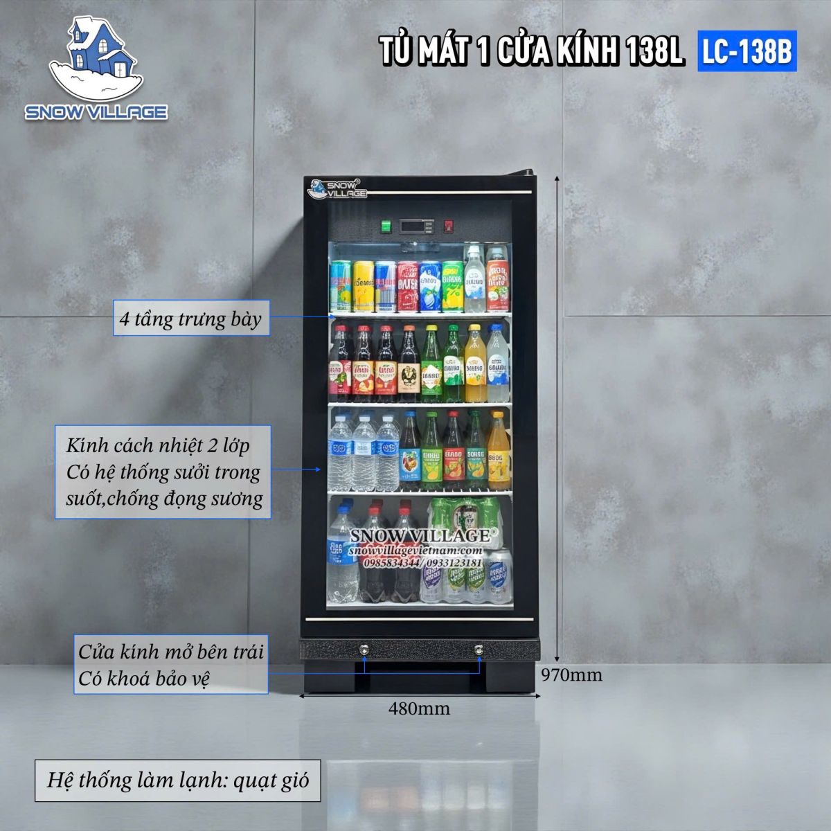 Được thiết kế để phục vụ trưng bày – bán hàng – bảo quản trong không gian nhỏ và môi trường mở. LC-138B rất phù hợp cho hội chợ, booth ngoài trời, quầy lưu động.