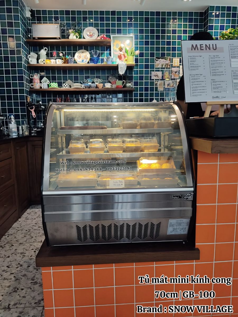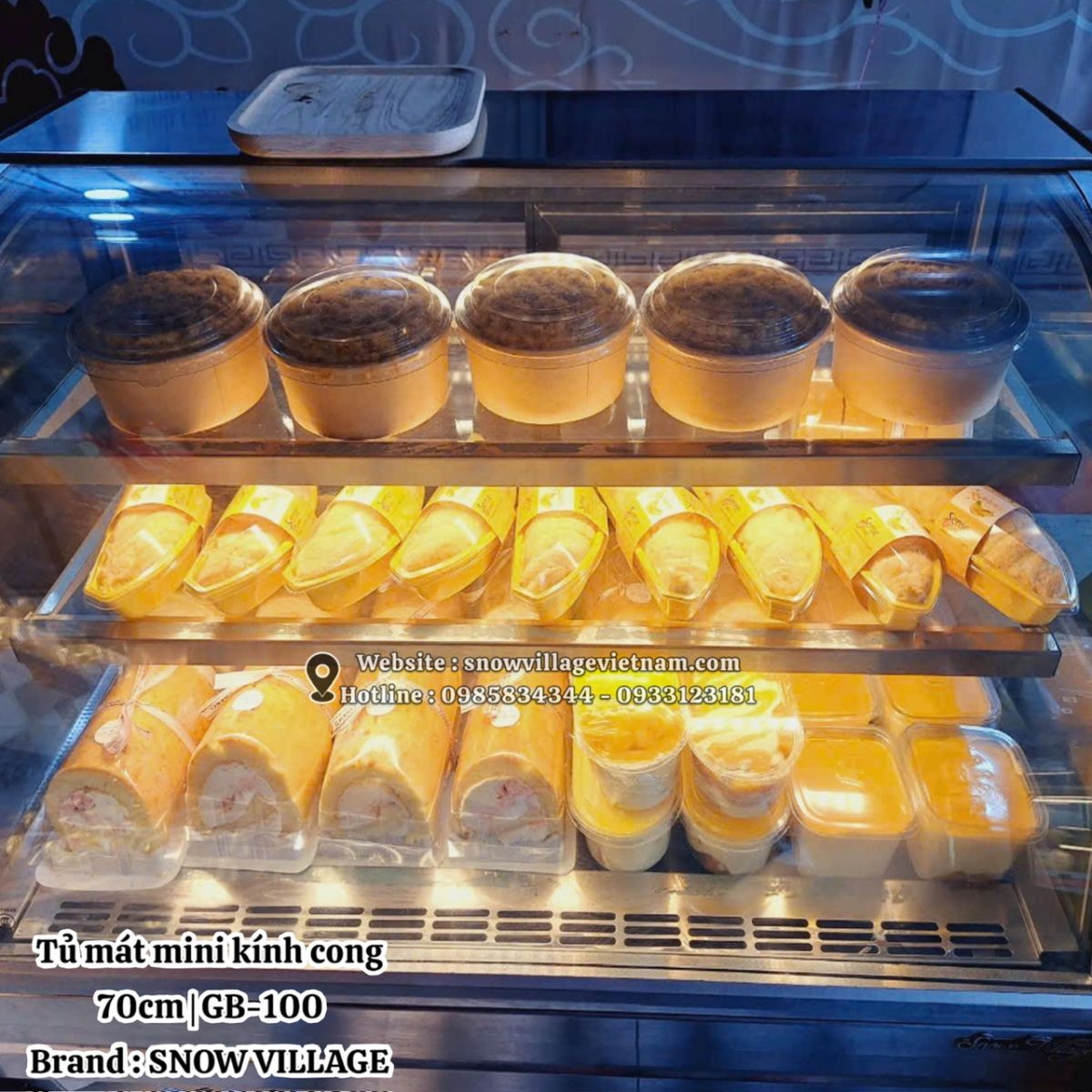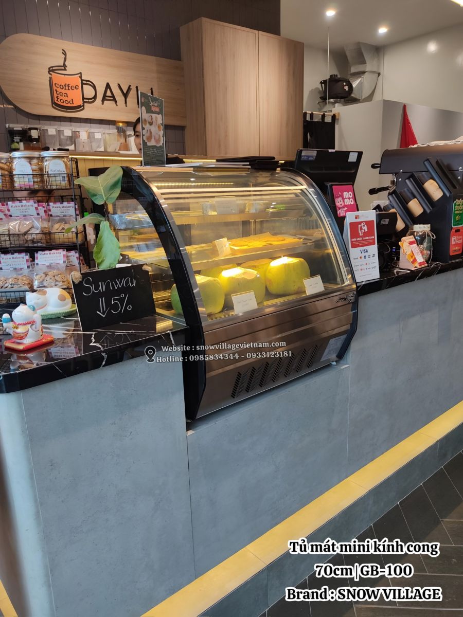 • Thích hợp cho tiệm bánh nhỏ hoặc quán trà sữa: bảo quản tốt, thu hút khách hàng nhờ thiết kế kính cong bắt mắt.