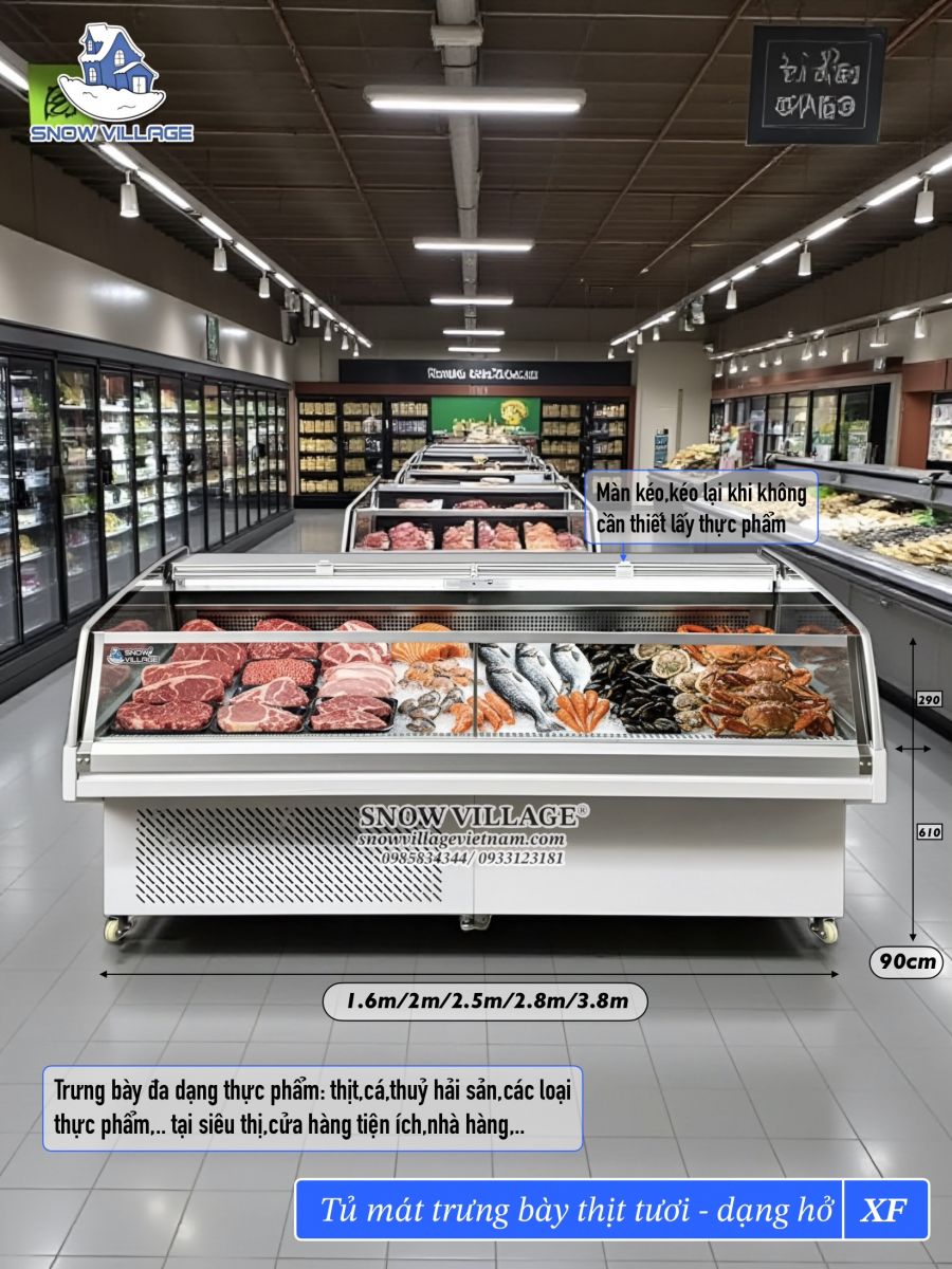 Tủ mát trưng bày thịt tươi dạng hở 2m thương hiệu Snow Village®