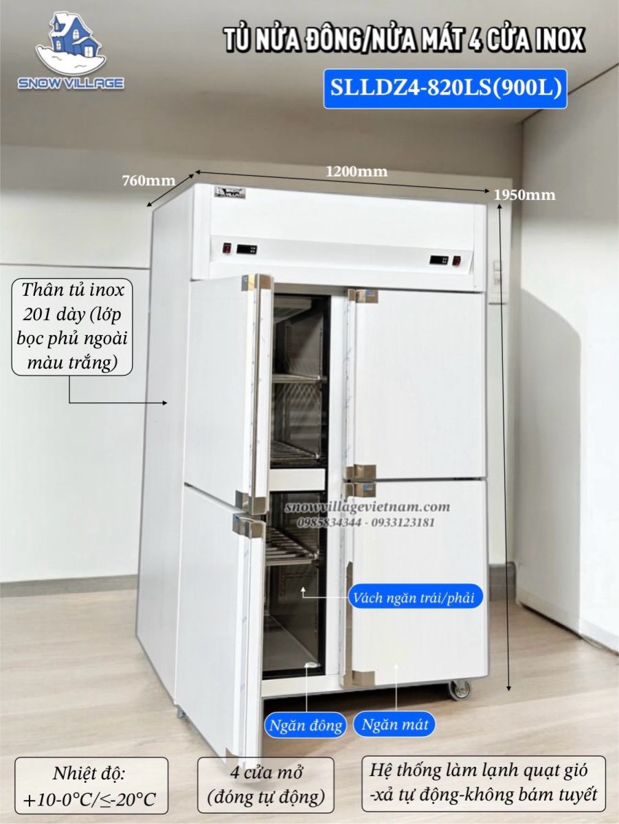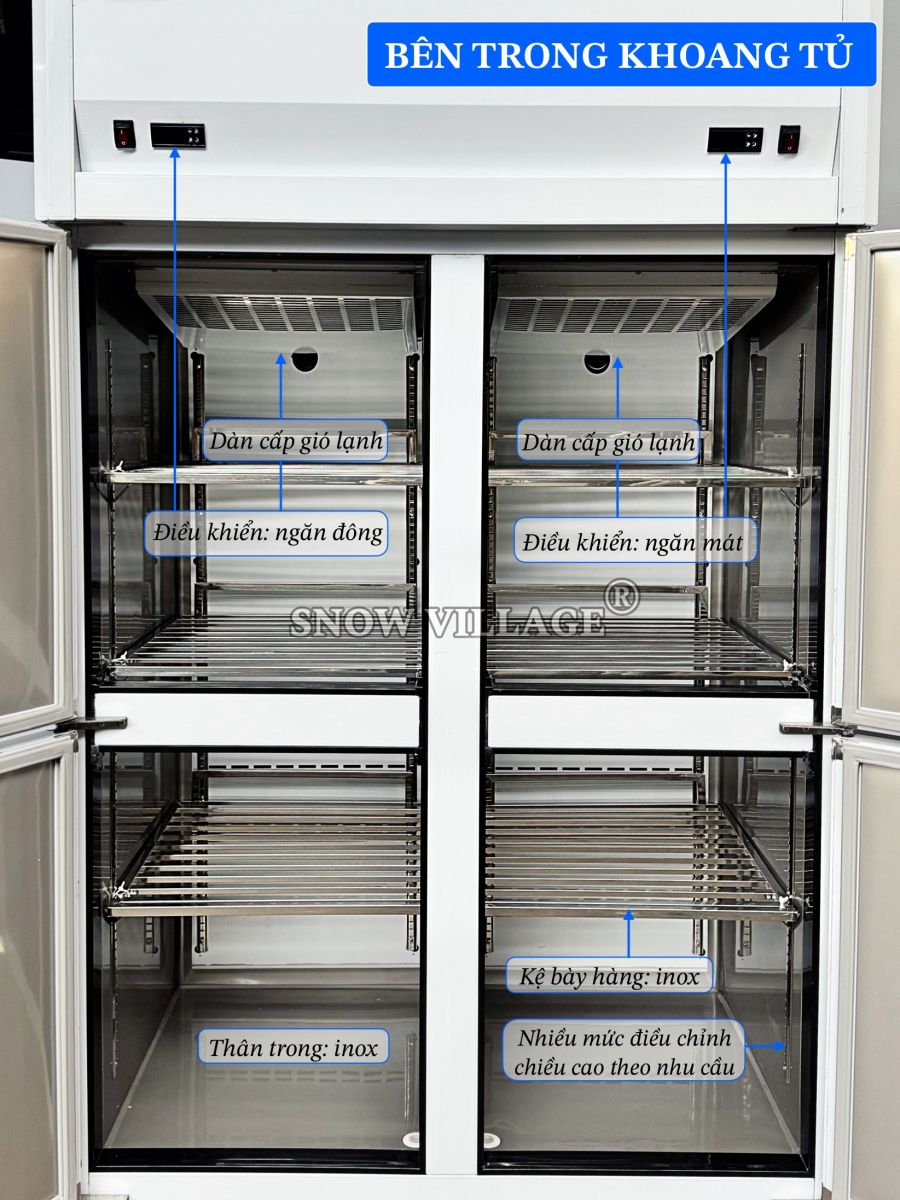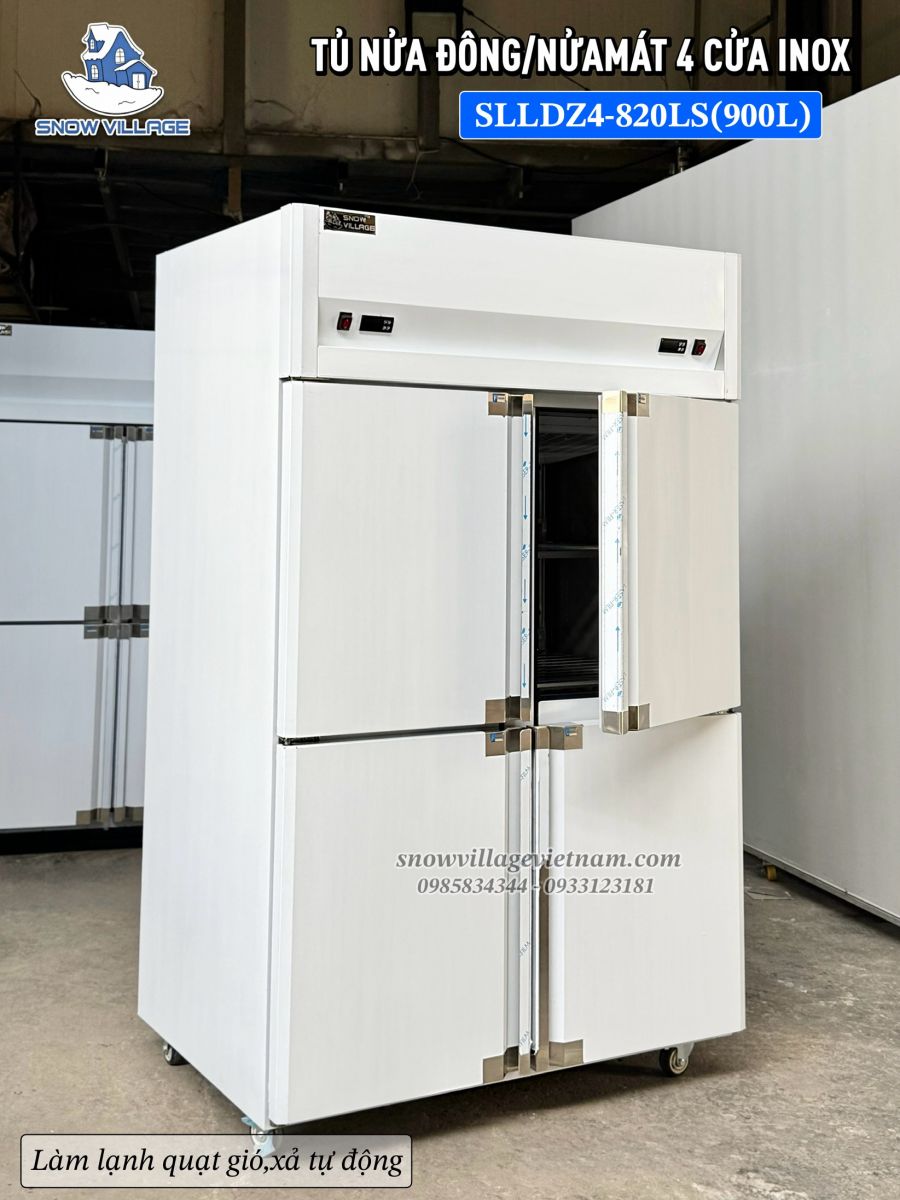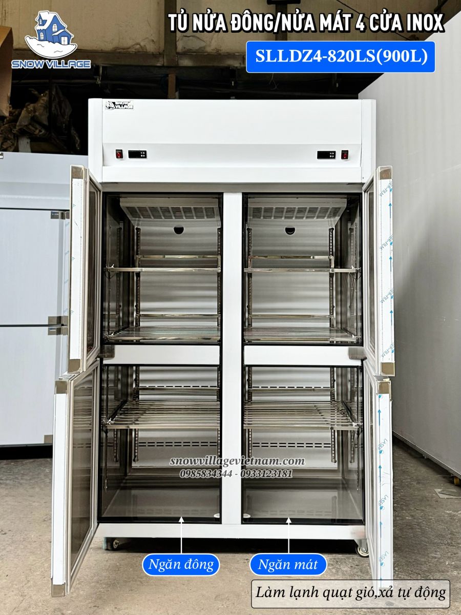 Tủ nửa đông nửa mát 4 cánh inox thương hiệu Snow Village®