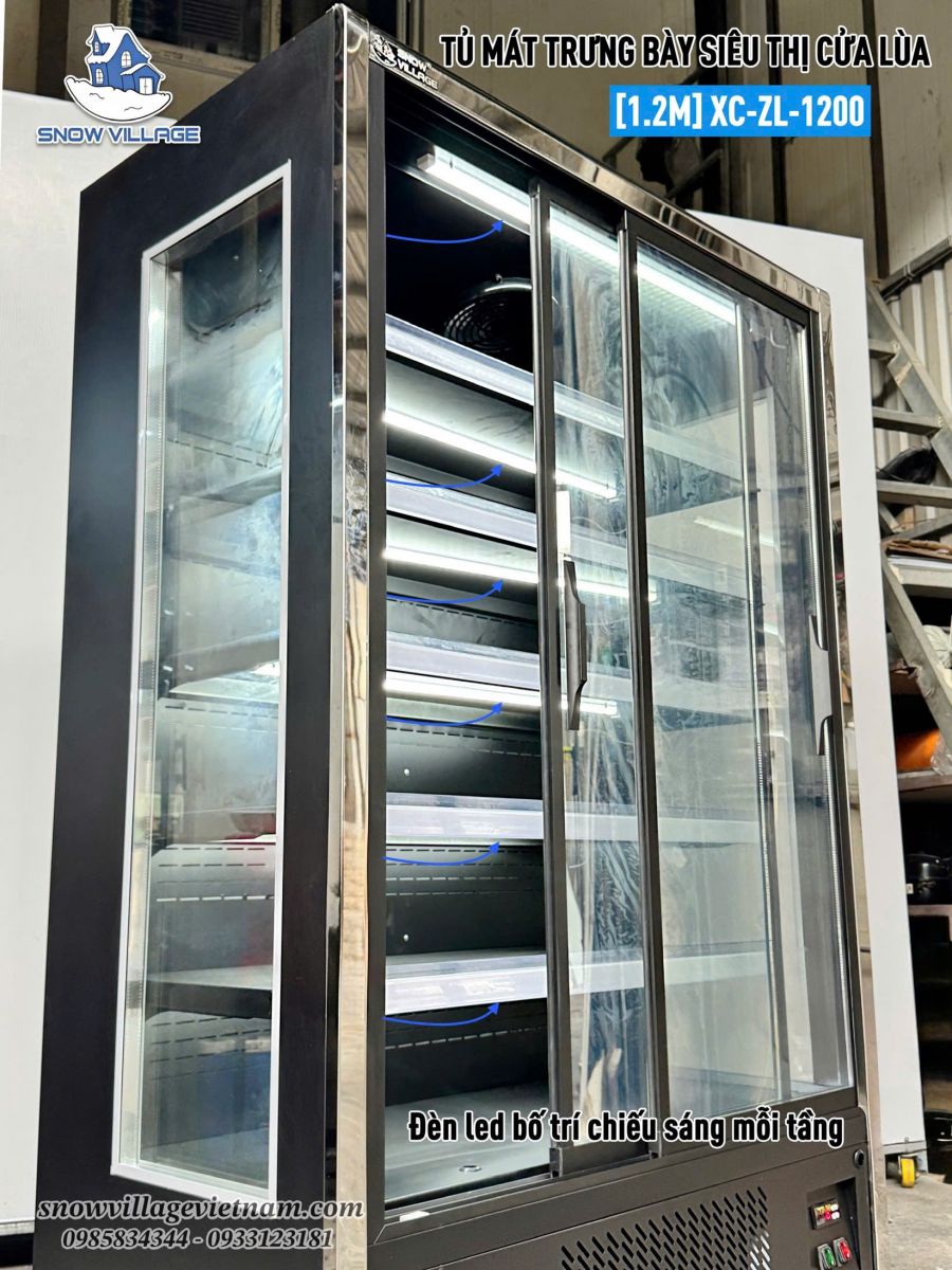 Tủ trưng bày siêu thị XC-ZL-1200 – Cửa lùa nhẹ tay, trưng bày cực hay!