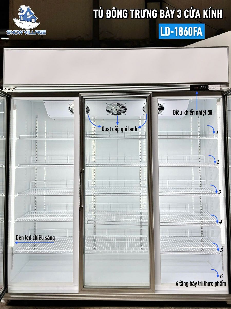 Tủ Đông Cao Cấp 3 Cửa Kính LD-1860FA là lựa chọn hoàn hảo cho những ai muốn bảo quản thực phẩm hiệu quả và trưng bày chuyên nghiệp.